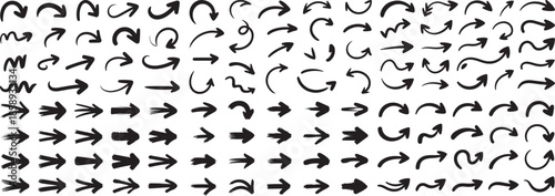 A dense arrangement of various black curved and straight arrow shapes fills the frame creating a visually complex pattern high quality