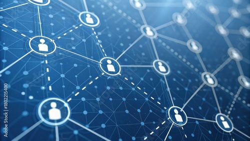 A digital network representation with interconnected nodes symbolizing social connections and data flow.