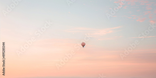 A dreamy photo of a morning sky with a distant hot air balloon in the distance