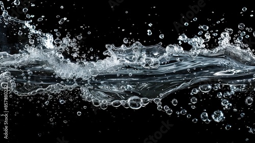 A dynamic image of water in motion, with bubbles and ripples forming as it flows, highlighting the purity and fluidity of water.