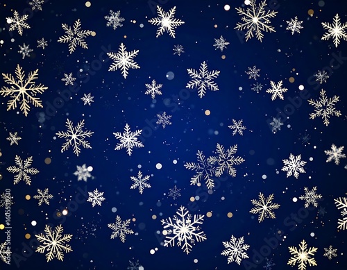 A festive background of snowflakes on a dark blue backdrop