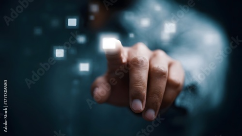 finger, touch, digital, interface, selecting, icon, technology, hand, pointer, screen, glowing, square, light, blue, dark, grid, network, connection, datum, future, innovation, modern, abstract, bright, sharpened, action, choice, decision, interaction, virtual, system, computer, pixel, glow, energy, motion, clean, sharp, precision, input, cyber, information, binary, logic, computing, user, life events, vision, development
