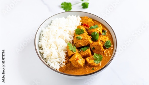 chicken, curry, indian, food, rice, cilantro, bowl, spicey, cookery, dish, meal, delicious, aromatic, herb, white, background, epicure, traditional, homemade, savoury, culinary, ethnic, flavorful, fresh, garnish, protein, dinner, lunch, appetising, colourful, tasty, exotic, spice, cooked, plate, serving, healthy, nourishment, dining, receipe