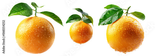 A fresh, juicy orange or grapefruit with water droplets represents natural, vibrant citrus goodness isolated on a white transparent background