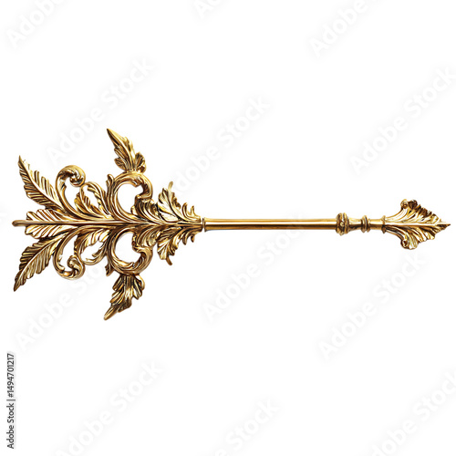 A Gilded Arrow with Baroque Floral Scrolls Versaill Isolated on Transparent Background