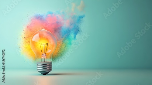 light bulb, idea, innovation, creativity, colourful, explosion, powder, bright, inspiration, concept, design, background, abstract, energy, imagination, technology, startup, business, growth, success, future, progress, development, solution, thinking, mind, brain, vision, strategy, planning, artistic, vibrant, dynamic, modern, fresh, new, light, pastel, green