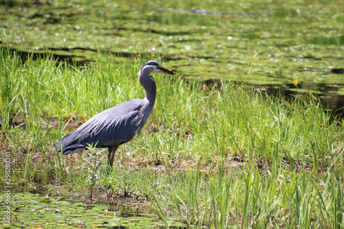 animal, beak, bird, black, blue, fauna, grass, blue crane, green, heron, hunt, marsh, meadow, park, duck pond, summer, swamp, water, white, wild, wildlife, wing