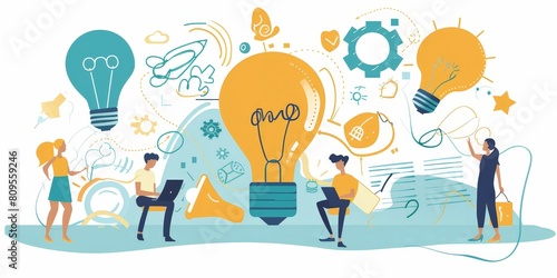 business, idea, design, concept, innovation, creativity, people, bulb, technology, symbol, illustration, vector, success, solution, businessman, flat, icon, background, work, light, team, inspiration, group, management, graphic, strategy, company, marketing, signs, communication, man, brainstorm, development, teamwork, research, banner, cyberspace, finance, project, office