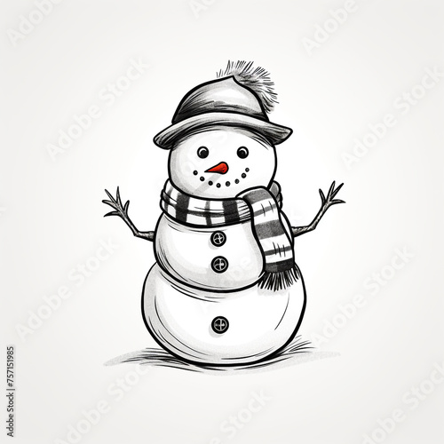 a Hand drawn snowman vector, simple, black and white сreated with Generative Ai