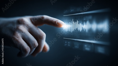 A hand interacts with a digital sound wave interface for audio manipulation.