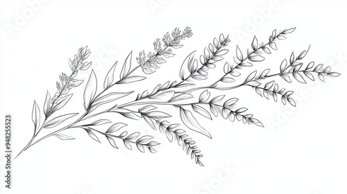 floral, sprig, tree branch, leaf, blossom, flower, botanical, illustration, drawing, hand-drawn, ink, black, white, background, simple, minimalist, elegant, nature, design, art, line, outline, graphic, vector, clip art, vintage, retro, delicate, feminine, graceful, beauty