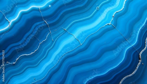 A high-angle close-up shot of blue agate stone, featuring a mesmerizing pattern of wavy lines and crackled textures