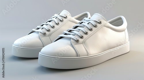 A high-resolution image capturing the sporty elegance of white leather tennis shoes with subtle logo detailing, perfect for a casual yet polished look.
