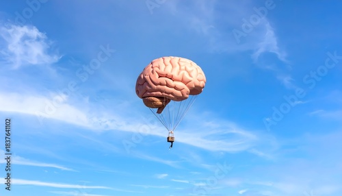 brain, balloon, sky, creativity, imagination, concept, surreal, blue, floating, idea, symbol, freedom, innovation, art, dream, cloud, whimsical, mental, visual, unique