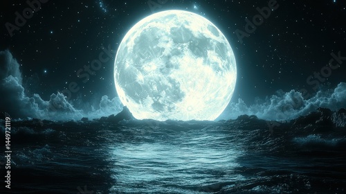 moon, night, water, star, cloud, sky, moonlight, dark, blue, celestial, landscape, ocean, sea, space, cosmic, dreamy, aethereal, fantasy, mystical, serene, tranquil, peaceful, nature, background, wallpaper, calming, quiet, lunar, night sky, night scene, celestial bodies