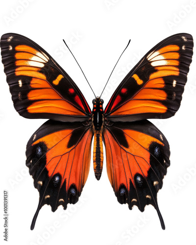 large, orange, butterfly, black, marking, wing, resting, isolated, white, background, insect, nature, macro, beauty, colourful, yellow, monarch, tropical, summer, bright, animal, flying, closeup, single, bug, moth, wildlife, biology, spring, collection, design, pretty, blue, pattern, detail, garden, morpho, lepidoptera, green, flight, light, entomology, antennae, celebration, attractive, delicate, open, transparent