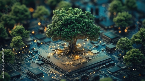 nature, technology, tree, root, circuit board, green, growth, environment, digital, future, innovation, sustainability, science, progress, network, electronic, computer, circuit, chips, datum, cyberspace, server, research, engineering, development, concept, abstract, illustration, three-dimensional, render, design, background, pattern, texture, art, graphic