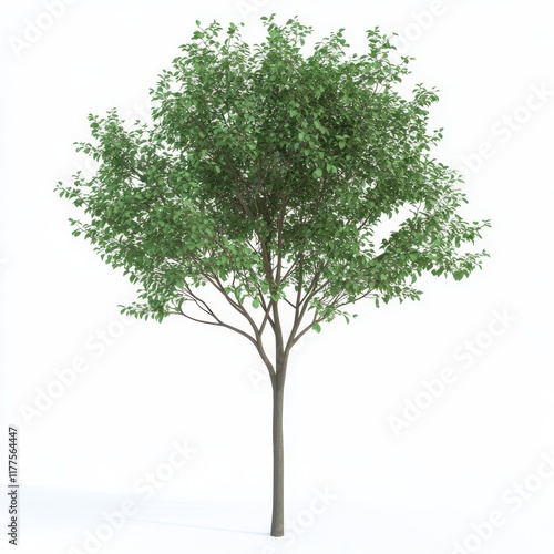 A lush green deciduous tree with a full canopy, showcasing vibrant leaves against a bright background.