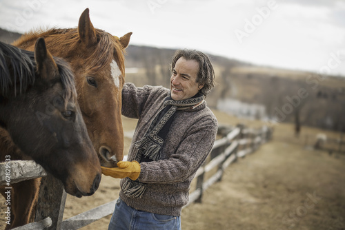 feeding, stroking, male, man, real people, north america, us, new york city, technique, selective focus, animal, vertebrate, mammal, herbivore, horse, body part, animal head, equipment, farm, built structure, rural scene, outdoors, organic, animal welfare, animal husbandry, paddock