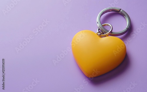 A matte yellow heart-shaped keychain on a soft lilac background with a smooth pastel finish for Valentines Day and 8 March