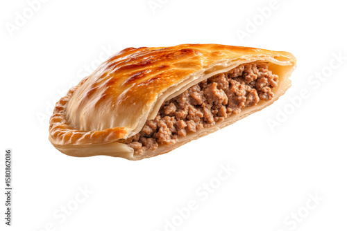 meat, pastry, filling, visible, open, food, meal, bake, pie, lunch, snack, traditional, cookery, cooked, dinner, delicious, plate, crust, fresh, homemade, hot, dish, tasty, background, cotton balls, dough, white, closeup, healthy, half, epicure, bakery, wooden, vegetable, cheese, pasty, savoury, cornish, beef, isolated, cut-out, clipping path, object, hi-res, design element, white background, clean
