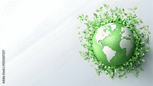A minimalist 3D green globe encircled by leafy vines, glowing softly, eco-friendly and modern, ideal for Earth Day promotions, sustainability graphics, or environmental logos.