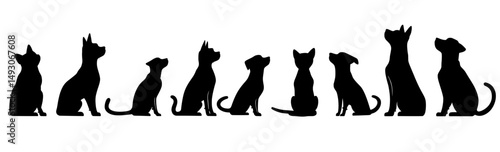 A modern dog silhouette collection set against a white background, symbolizing an animal