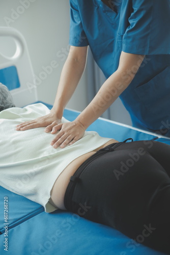 A Modern rehabilitation physiotherapy worker with senior client
