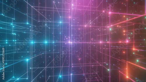 A network of glowing lines connecting nodes across a subtle grid background, cool tones like blue, teal, and purple for a tech-savvy appearance, 16:9