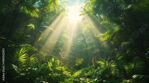 rainforest, canopy, sunlight, foliage, vibrant, panoramic view, forest, sun, tree, nature, light, tree, landscape, green, morning, wood, fog, mist, park, ray, ray, wood, road, path, sunbeam, misty, summer, sunshine, jungle, beautiful