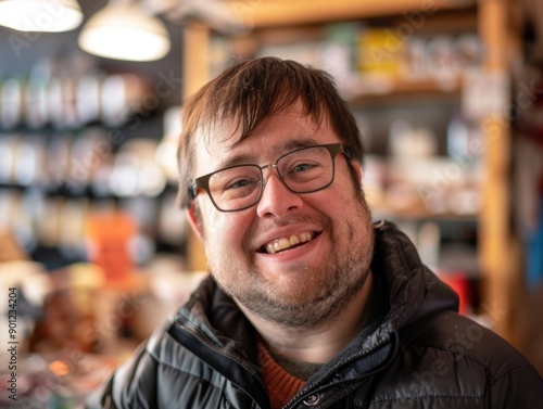 man, goggles, smile, store, retail, client, service, salesperson, commerce, business, shopping, happy, pleased, satisfied