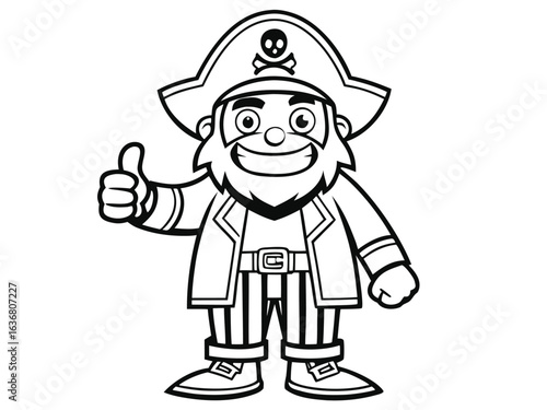 children, pirate, sword, thumb, colouring, illustration, beard, character, vector, friendly, graphic, individuality, jolly, mascot, artwork, bone, book, buccaneer, captain, crossbones, drawing, eye, one person, page, parrot, people, thumb up, up, art, black-and-white, cartoon, dagger, hat, holding, hook, isolated, patch, roger, sailor, foulard, shoe, studio shot, vertical, white, adult, animal themes, black, design, domestic animals