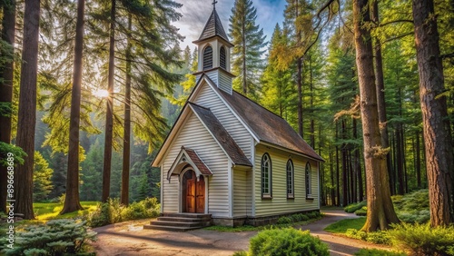 A quaint church nestled in a serene forest setting , church, woods, nature, peaceful, serene, tranquil, religion