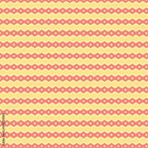 geometric, pattern, zigzag, stripes, chevron, shape, abstract, design, texture, wallpaper, background, fabric, textile, wrapping paper, print, repeating, seamless, modern, contemporary, retro, vintage, ornament, decorative, vibrant, colourful, yellow, pink, peach, coral, red, creamy, pastel, soft, bright, light, sunny, warm, horizontal, simple, clean, minimalist, stylish, trendy, fashion, home decor