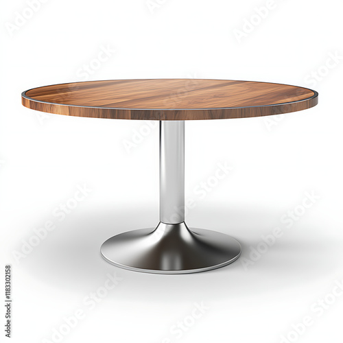 round, office, meeting, table, sturdy, metal, footed, wooden, tabletop, isolated, transparent, background, three-dimensional, render, photorealistic, detail