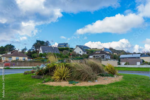 A roundabout in the village of Vierville-sur-mer in Normandy, France
