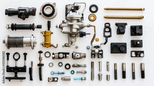 set, automotive, fuel, injection, system, component, including, pump, regulator, white, isolated, background