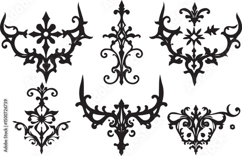 pattern, ornament, floral, flower, design, vector, vintage, decoration, element, art, illustration, tattoo, seamless, wallpaper, decor, swirl, set, black, leaf, style, shape, symbol, baroque, damask, elegance