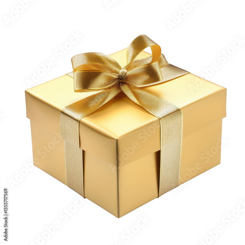 a shiny gold gift box tied with a satin ribbon perfect for celebrations and special occasions its elegant appearance suggests it contains a thoughtful present