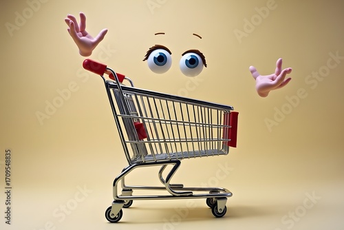 face, object, cartoon, funny, smile, design, creative, realistic, character, expression, art, toy, decor, animated, cute, unique, comic, playful, household, illustration, prop, modern, stylish, cart, shopping, buy, streetcar, market, basket, supermarket, business, sale, shop, retail, empty, shopping cart, metal, object, store, commerce, wheel, purchase, client, push, red, buying, car