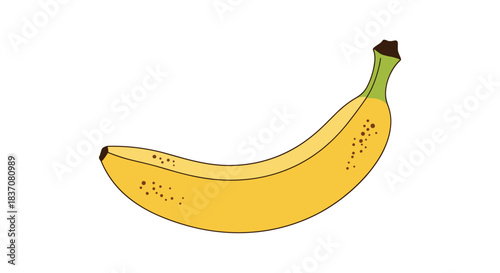 A simple and realistic vector illustration of a single ripe yellow banana with small brown spots isolated on a white background.