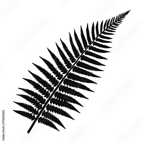A single black and white illustration of a lush fern leaf design