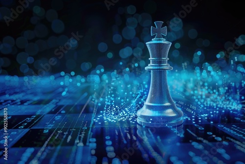 A single chess piece sits on the top of a chess board, ready for play