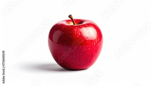 apple, red, fruit, food, single, whole, fresh, healthy, organic, natural, isolated, white background, studio shot, still life, round, glossy, shiny, juicy, ripe, nourishment, vitamin, snack, dessert, sweet, taste, leaf, stem, fruit farm, garden, harvest, fall, autumn, food photography, diet, vegan, vegetarian, refreshing, delicious, simple, minimalist