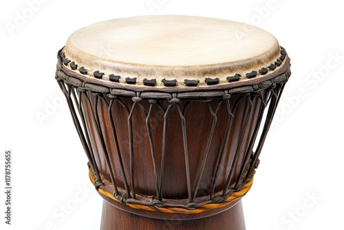 djembe, drum, percussion, instrument, musical, wood, brown, wooden, african, rythm, music, culture, traditional, hand, melodic, sound, beat, tempo, tone, melody, texture, craftsmanship, artistry, heritage, bequest, history, global, earth, ethnic, tribal, folk, acoustic, natural, organic, skin, goat, leather, rope, string, isolated, white, background