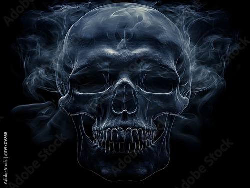 skull, smoke, dark background, skittish, mysterious, halloween, gothic, horror, death, grisly, anatomy, bone, skull, shadow, vapour, fog, eerie, creepy, abstract, art, digital artwork, illustration, three-dimensional, render, fantasy, paranormal, occult, spirit, ghost, nightmare, fear, danger, evil, magic, witchcraft, mystery, thriller, suspense