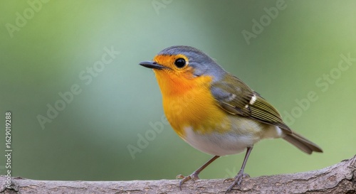 bird, animal, avian, creature, fauna, wildlife, ornithology, songbird, flycatcher, passerine, feathered, wild, nature, feather, plumage, beak, eye, wing, tail, breast, throat, head, belly, orange, yellow, blue, grey, white, green, olive, colourful, vibrant, bright, small, tiny, little, cute, beautiful, delicate, perched, sitting, resting, watching, looking, alert, calm, peaceful, still