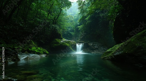 water, forest, tree, green, nature, stream, rock, landscape, waterfall, pool, plant, foliage, sunlight, peaceful, serene, tranquil, moss, clear, environment, scenic, outdoors, daylight, wet, freshness, beauty, calm, ripple, texture, smooth, wilderness, natural, ecosystem, flowing, light, dark, deep, lush, shadow, stone, bank, glistening, branch, up high, surface, hidden, vale, untouched