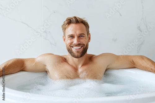 man, bathe, wellness, smile, tub, relaxation, modern, bathroom, style, health, unwind, enjoyment, treatment, self, comfort, ambience, retreat, peaceful, decor, refresh, portrait, escape, lifestyle, pamper, skincare, pleasure, beauty, male, bliss, balance, happy, fixture, water, design, facial, set, carefree, atmosphere, daylight, hygiene