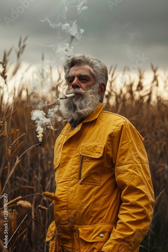 standing, smoking, yellow, uniform, weimaraner, rifle, snowmobile, ski, creative, beautiful, elegant, authentic, stylised, unique, shocking, original, surprising, image, fascinating, sublime, striking, fantastic, astonishing, magnificent